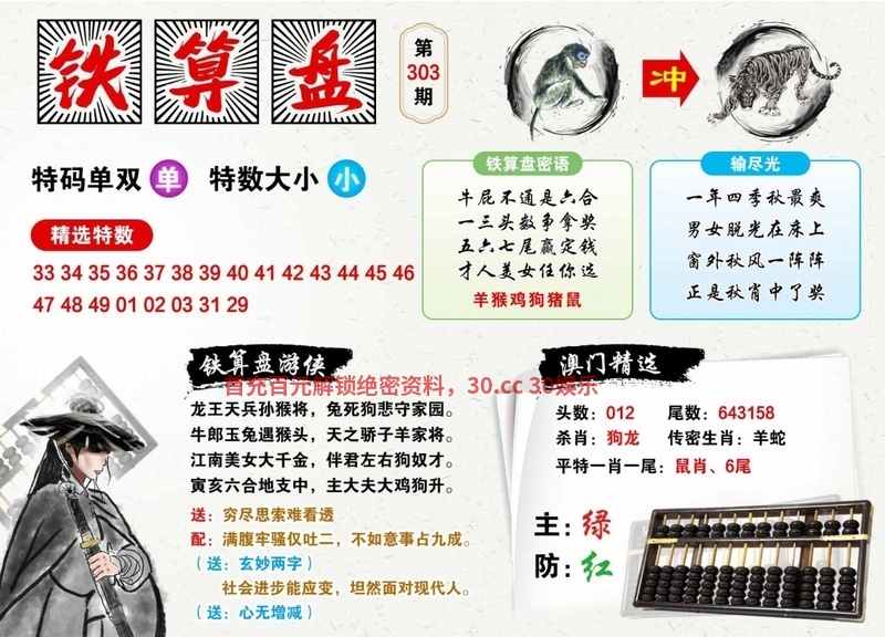 300期:八肖中特▮鸡猴虎蛇兔鼠羊猪▮开:虎40准